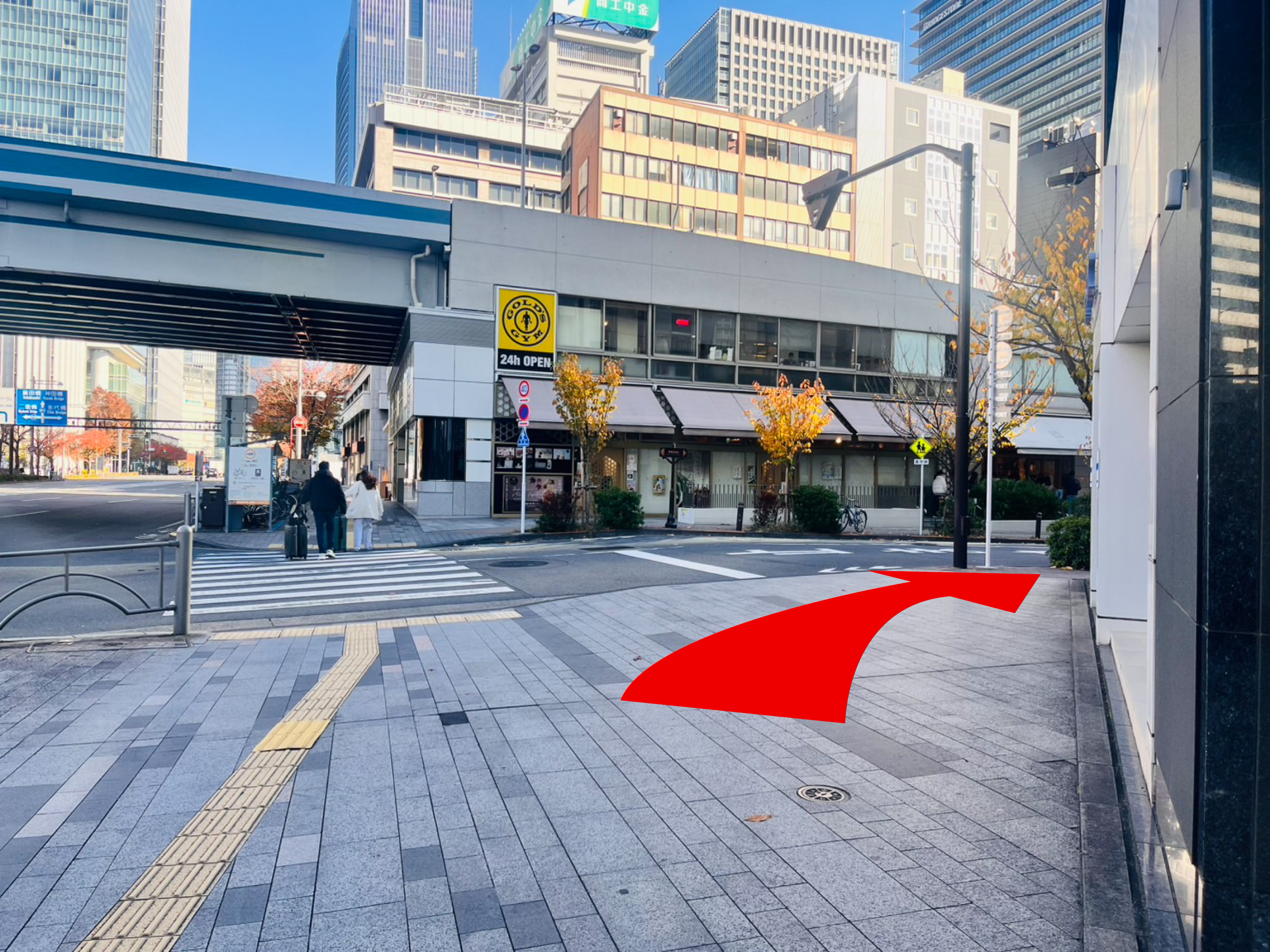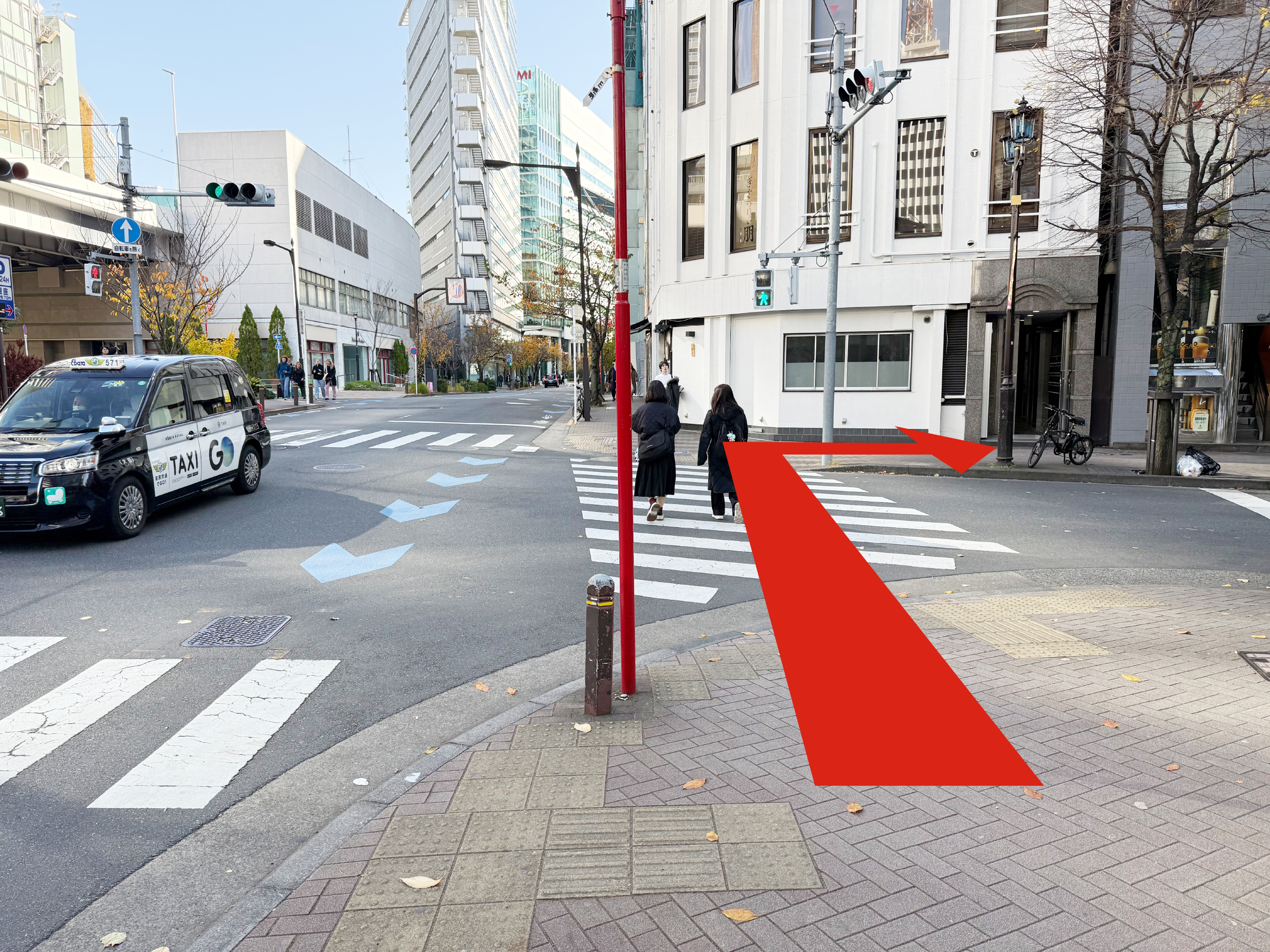 東京交通会館がございますので突き当たり左に曲がります。(北海道のアンテナショップが目