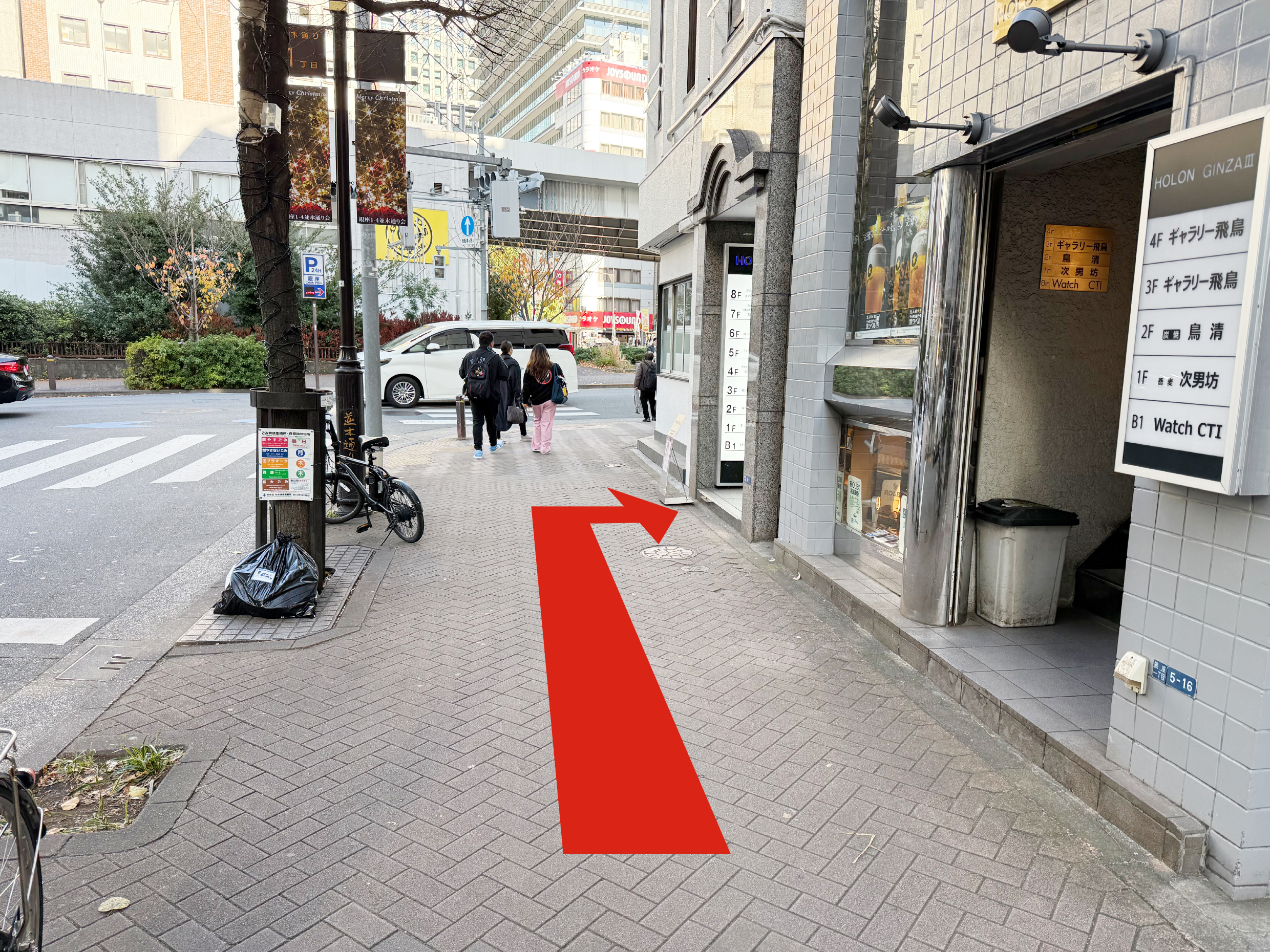 東京メトロ銀座駅、C8出口を出て右方向に進みます。