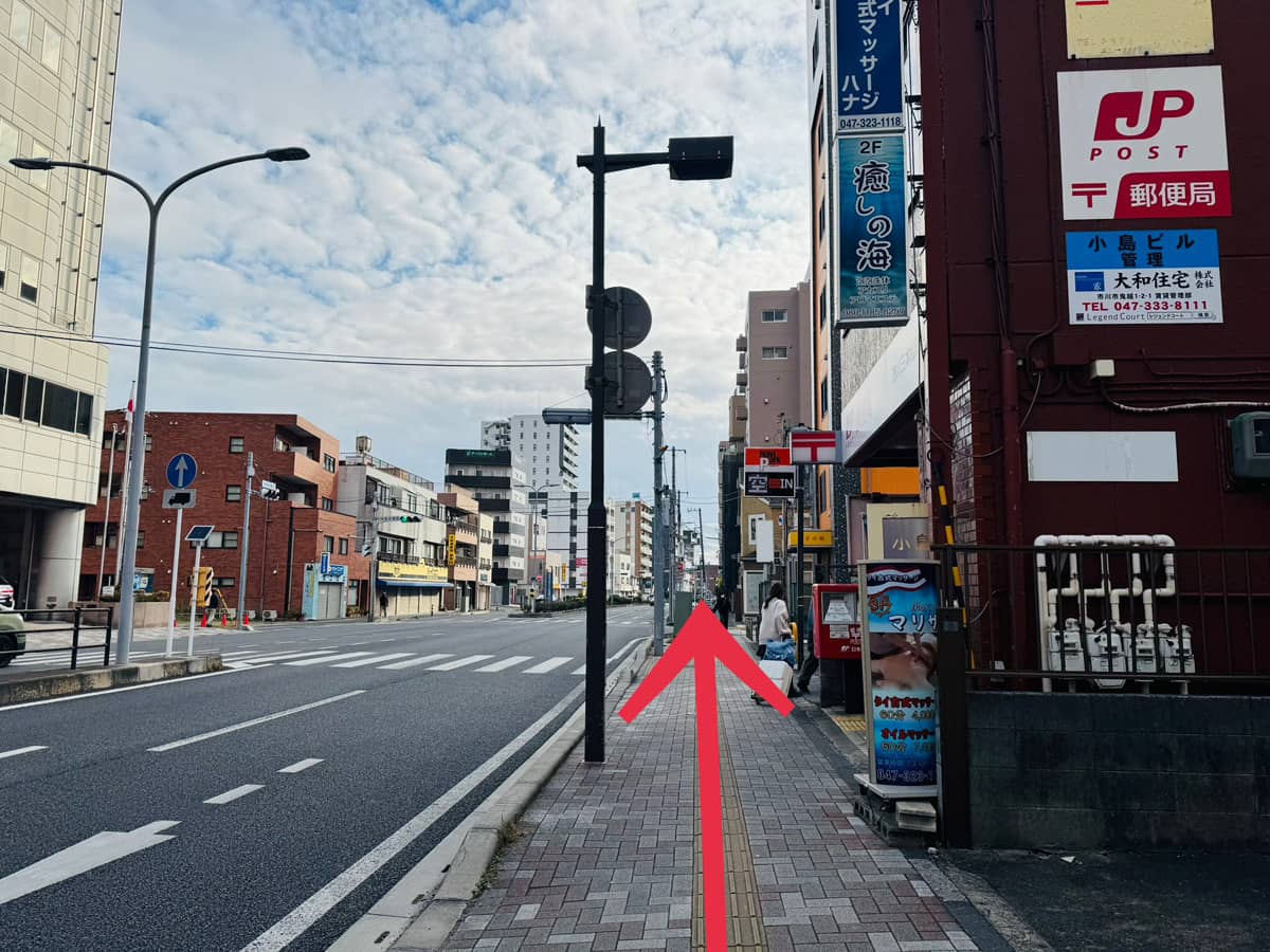 郵便局を通り過ぎて信号を渡ります。
